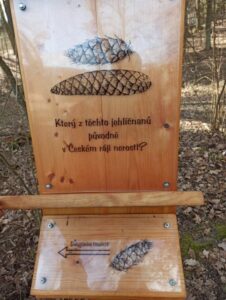 Děti se například seznámí s některými zdejšími lesními zvířaty a porovnají s nimi svůj krok či skok. Která z nich obývají strom se dozví na jiném zastavení. Dále při cestě spočítají letokruhy na pařezu a pokusí se odhadnout stáří obřího dubu. Že není šiška jako šiška děti poznají hned na dvou zastaveních. Na dřevěném „stromofonu“ si vyzkouší, jak dřevo nese zvuk. Vyhlídka na horu Kozákov odhalí její tajemství. A když vede cesta kolem rybníka, nesmí chybět zkoumání vodních živáčků. Kde se bere pod skalami voda a jak chutná, děti zjistí na zastaveních u pramenné stezky. A to zdaleka není všechno 🙂