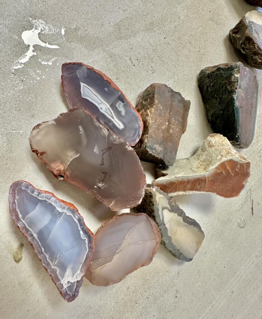 2. Naučit se rozlišovat drahokamy – křemenné hmoty v různých formách (např. žilné jaspisy, acháty, „pecky“) od horniny.
